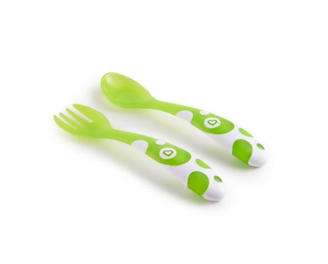 产品特点: 年轻的孩子们喜欢模仿爸爸妈妈,用munchkin的叉和匙羹,在餐桌上可以像他们自己喜欢的大人一样。 包装包括3个叉子和3个勺子,旨在帮助自我进食。 大弧形手柄设计使舀起更容易。
